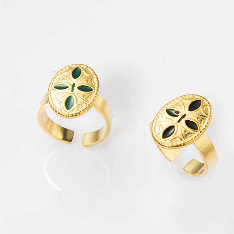 14K Gold Texture Drop Oil Oval Personality Opening Adjustable Ring